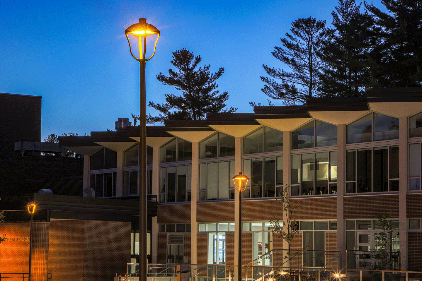 Ova moderna LED svetiljka pruža sofisticiran dizajn koji naglašava istoriju kampusa i što je još važnije, opremljena je optikom od ravnog stakla koja sprečava bilo kakvo rasipanje svetlosti nagore i smanjuje svetlosno zagađenje kako bi se obezbedilo osvetljenje u skladu sa tamnim nebom.